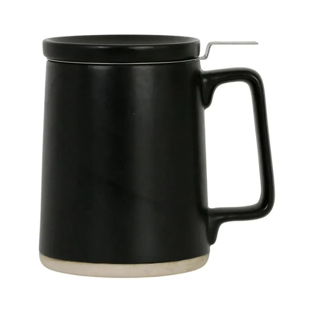 La tisanière en grès et inox noire de 50 cl est idéale pour les passionnés de thé.