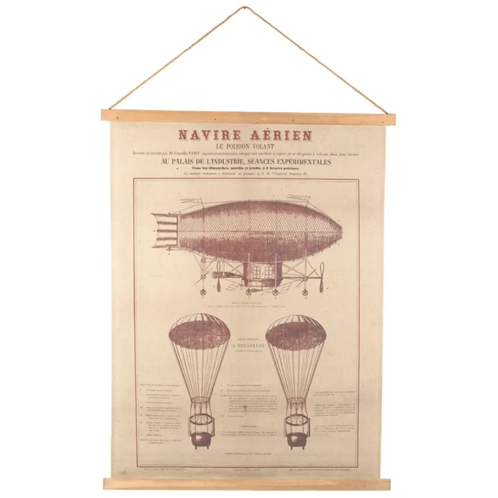 Toile en tissu de dimensions 65x85cm, illustrant un fascinant thème de navire aérien.