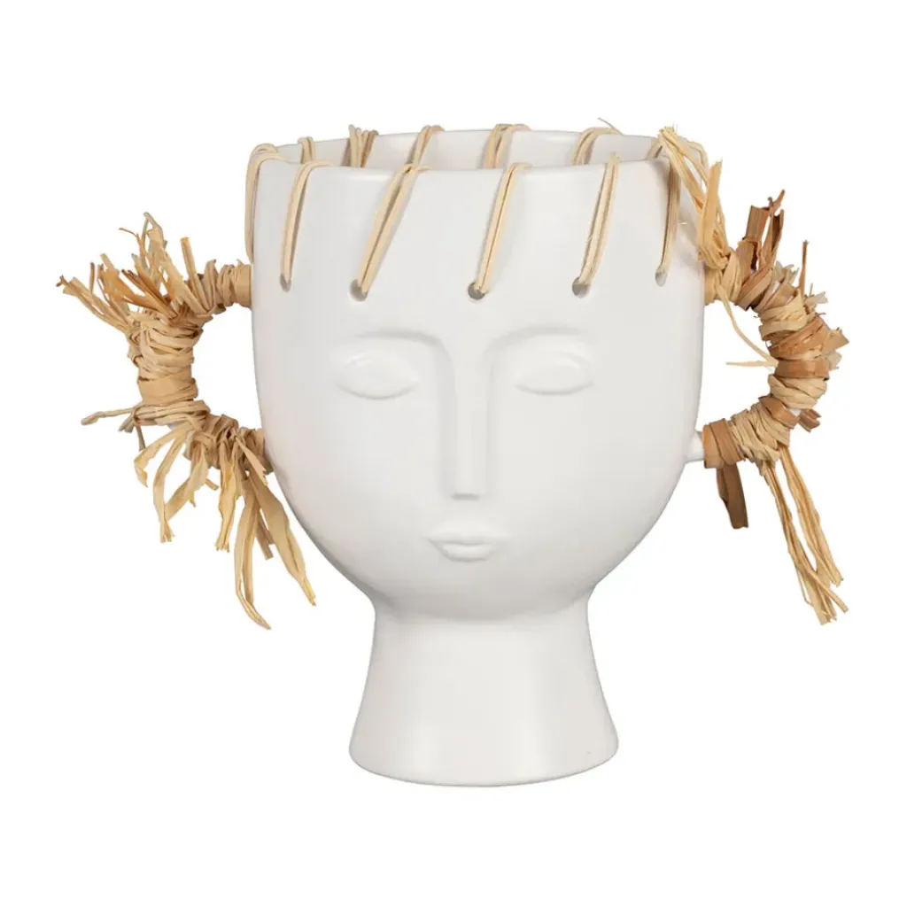 Mesurant 17 cm de hauteur, ce vase se distingue par son design unique représentant un visage stylisé, ajoutant une note de caractère et de modernité à votre espace.